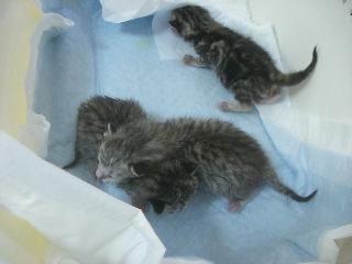 道路の側溝の中でニャーニャー鳴いていました。コンクリートのふたのついた側溝で、ふたが開かず、私たちでは助けることができませんでした。近所の交番のおまわりさんでも助けられず、消防士さんならなんとかなるだろうと、119番しました。ありがたいことにすぐに消防士さんが来てくれて、助け出してくれました。さすが消防士さんです。それにしても、えらい大掛かりな救出劇になってしまいました。
